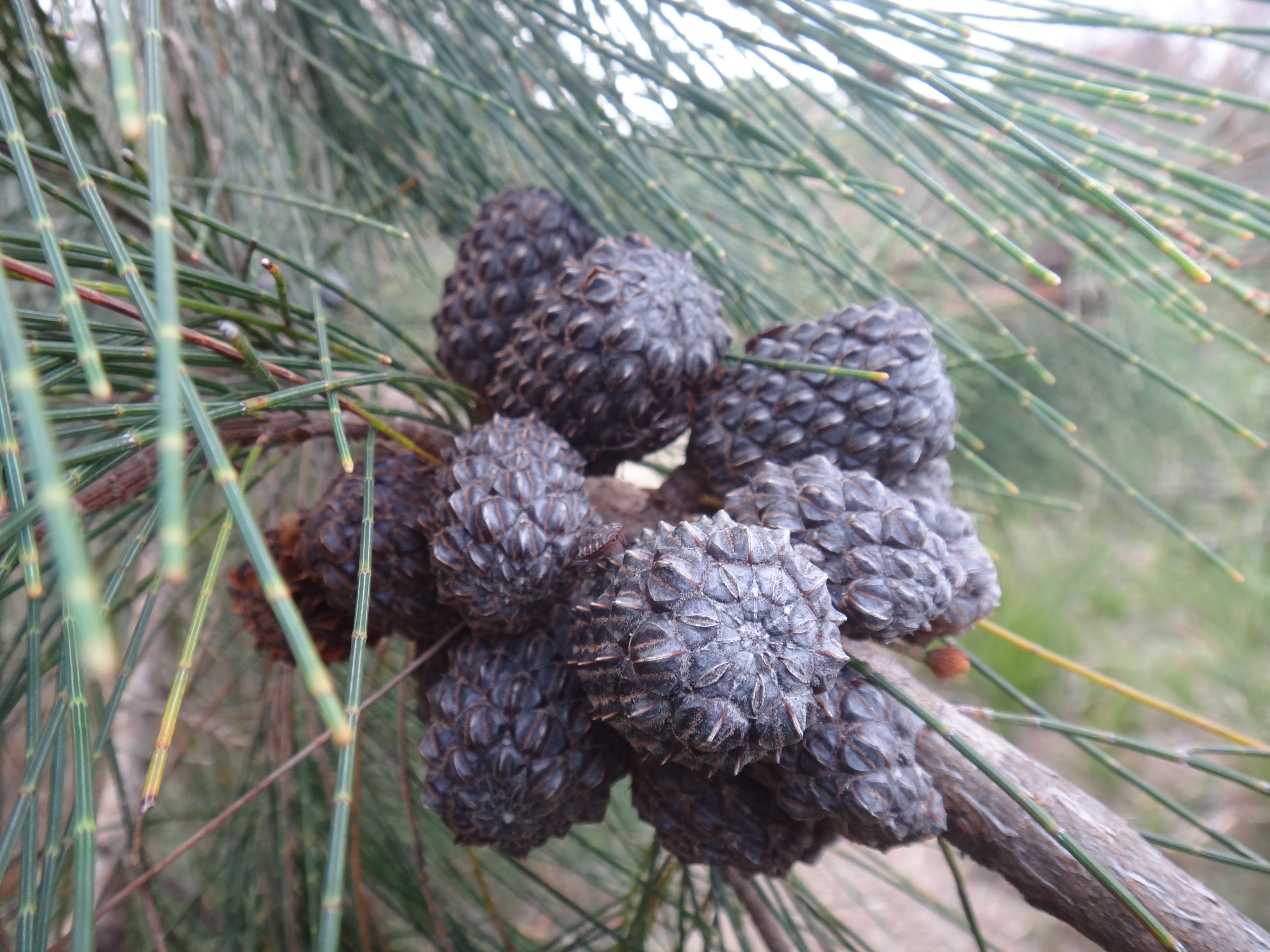 The She-oak ( Allocasuarina littoralis ) ‘closed’ forests are remarkably quiet. It is the most drought resistant tree in Tasmania. The needle like foliage is a dull dark grey. The fallen needles create a soft cushioning mat. The nut of the she-oak is also an important cultural resource for the Aboriginal people.